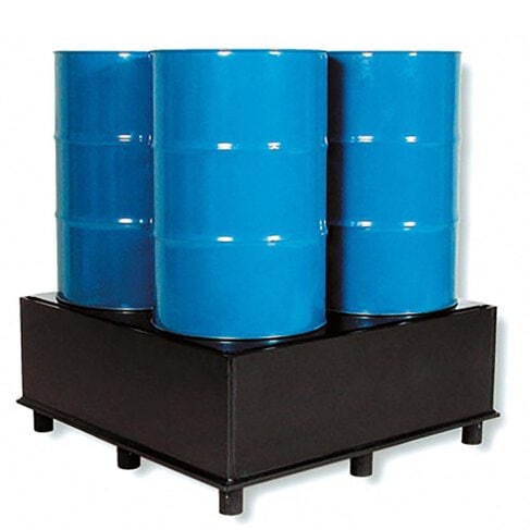 Auffangwanne aus Kunststoff (PE-HD) mit Füßen und Stellebene, Auffangvolumen 225 l, für 12 x 30 l, 9 x 60 oder 4 x 200 l Fässer