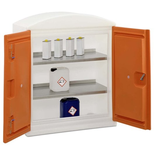 Umweltschrank aus PE mit Auffangwanne 47 l, 2 Fachböden aus Edelstahl, 975 x 520 x 1180 mm
