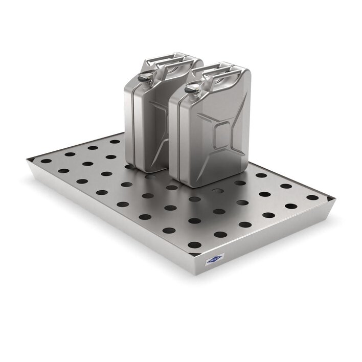 Kleingebindewanne hazSAFE aus Edelstahl mit Edelstahl-Lochblech, Auffangvolumen 75 l