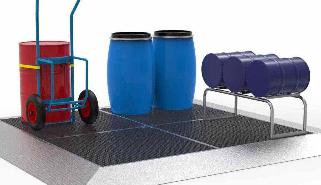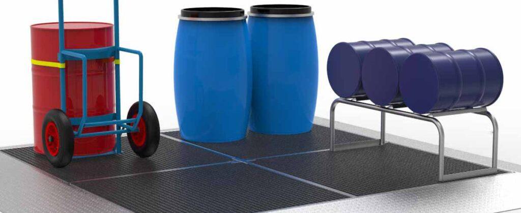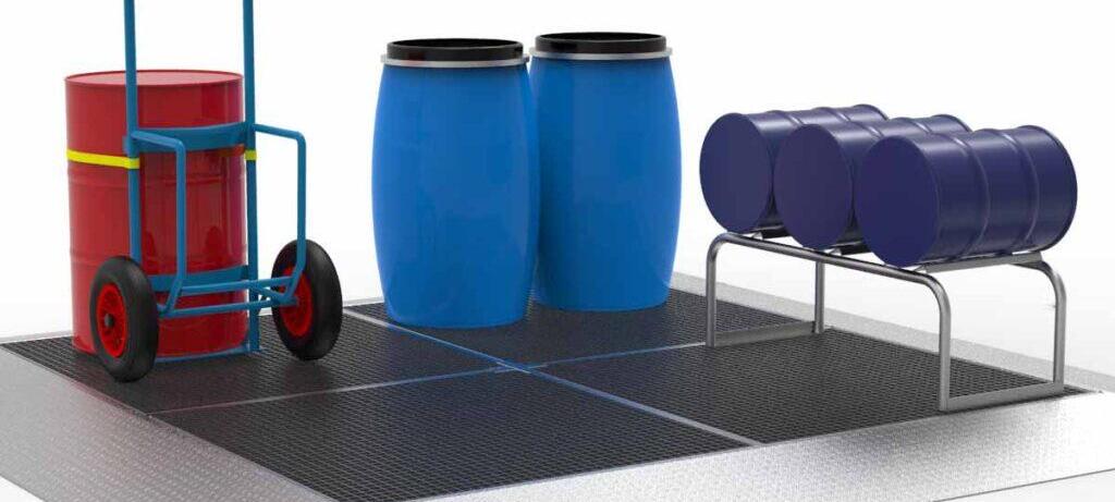 Auslaufende Flüssigkeiten sind ein alltägliches Risiko. Die Lagerung von Gefahrstoffen in Gebinden auf einer Auffangwanne…