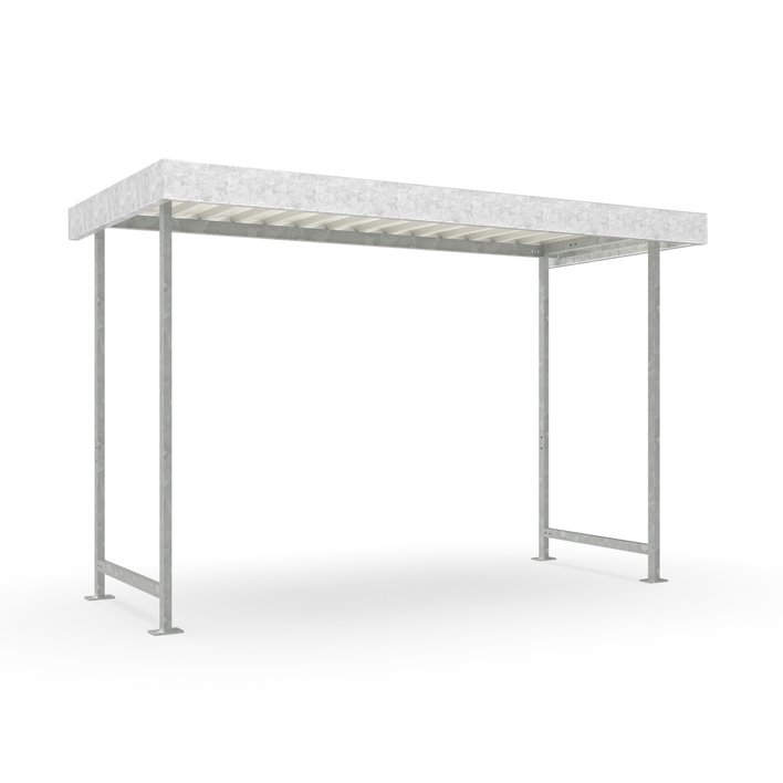 D 586 Fahrradüberdachung, Konstruktion und Dachblenden verzinkt, B 3350 mm, Grundeinheit