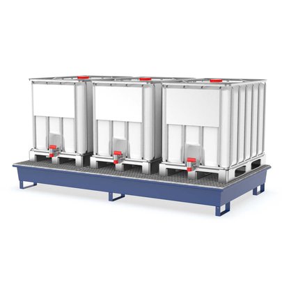 Auffangwanne aus Stahl für 3 x 600 l IBC, lackiert, mit Gitterrost, 2690x1450x310mm