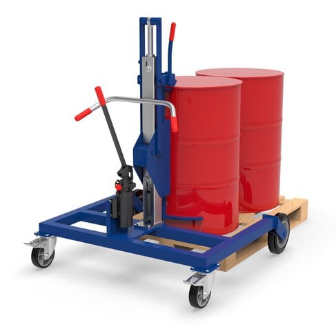 - Fassheber mit Fahrwerk, um Auffangwannen oder Paletten zu unterfahren