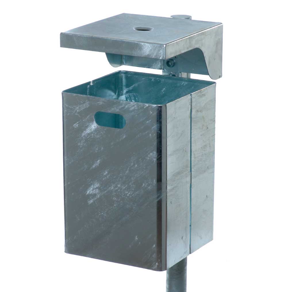 Abfallbehälter, Volumen 40 l, Abdeckhaube, zur Wand- oder Pfostenmontage, Ascher