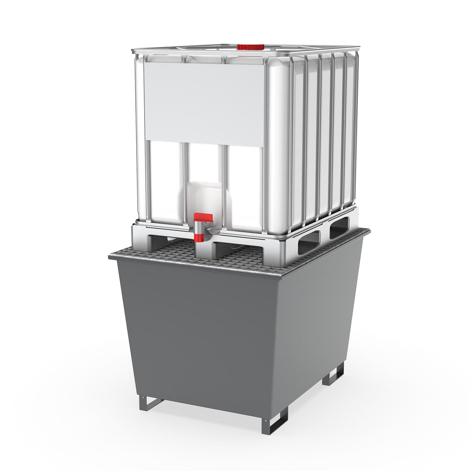 Gefahrstoffe in IBC-Containern sicher auf Auffangwannen aus Stahl lagern