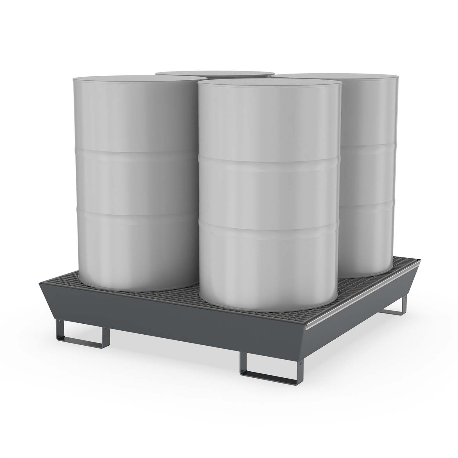 Gefahrstoffe in Fässern sicher auf Auffangwannen aus Stahl lagern