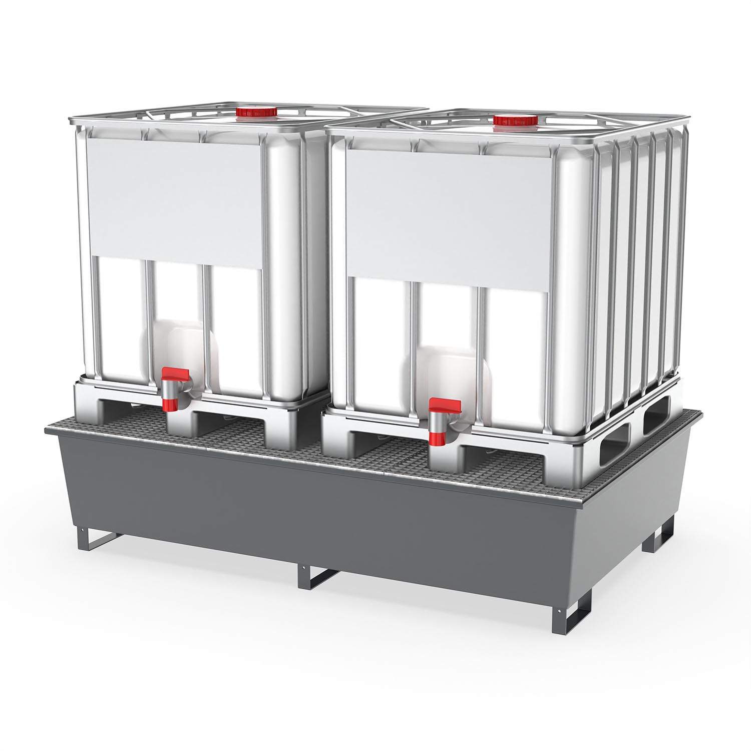 Gefahrstoffe in IBC-Containern sicher auf Auffangwannen aus Stahl lagern