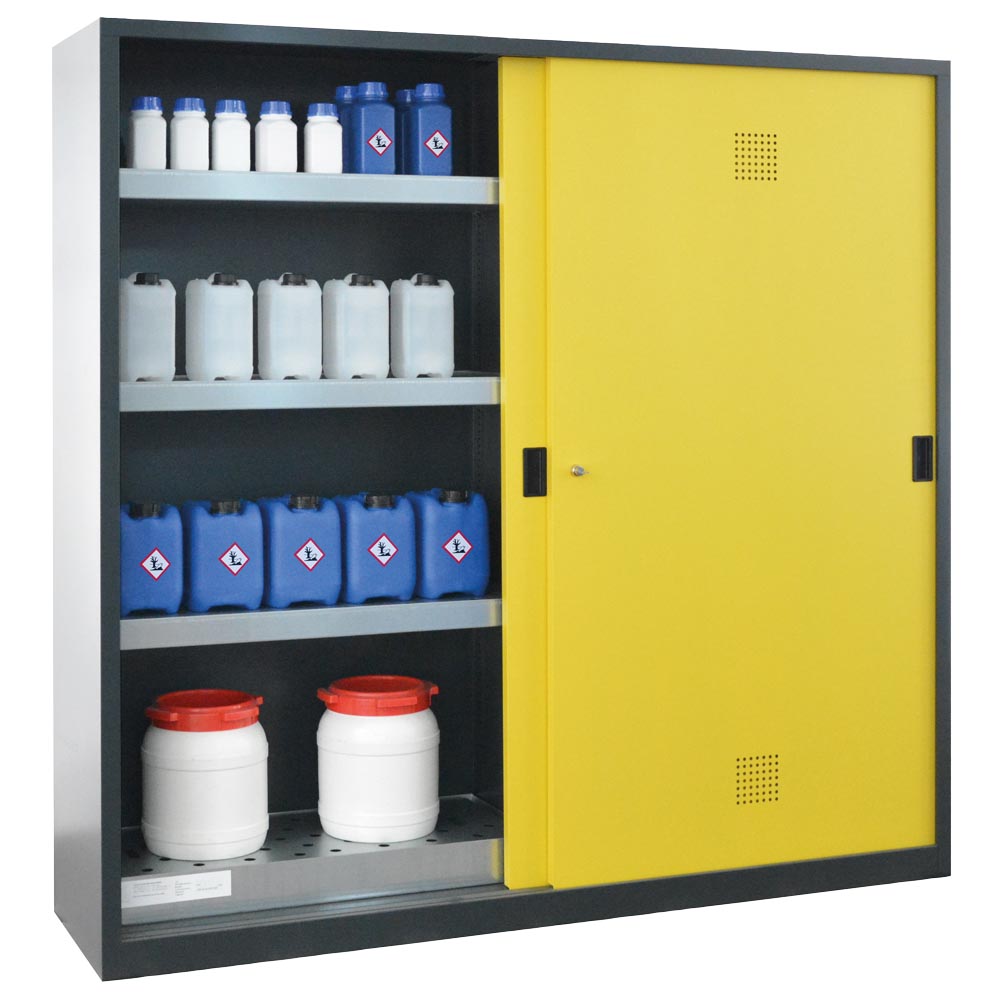 - Geeignet zur sicheren und vorschriftsmäßigen Lagerung von nicht entzündbaren Gefahrstoffen und Chemikalien in Arbeitsräumen