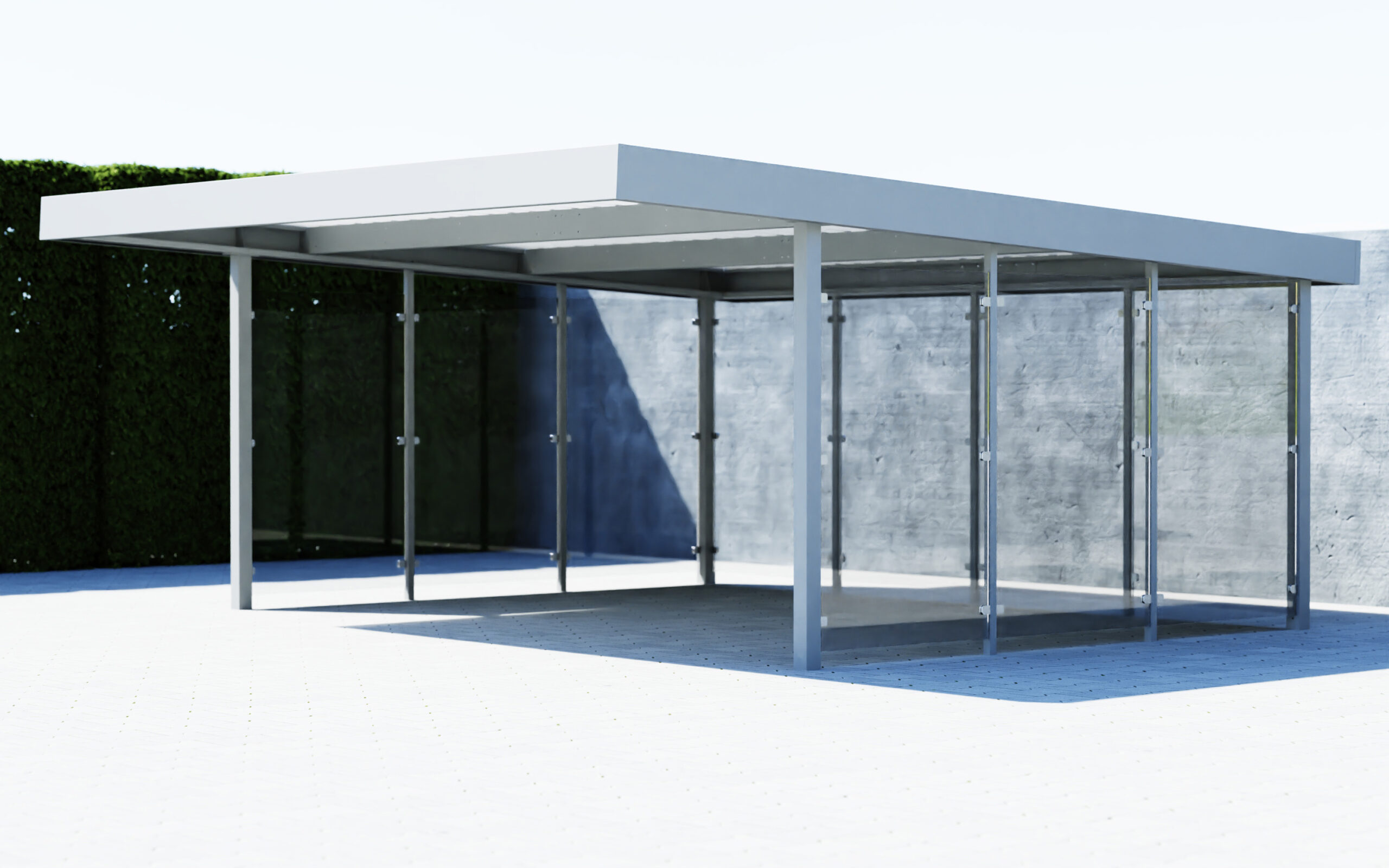 Das D 583 Carport aus Stahl ist ein modernes Carport für die Aufstellung vor Einfamilienhäusern, Mehrfamilienhäusern, Bürogebäuden und öffentlichen Einrichtungen. Das Carport aus Stahl eignet sich für 2 PKW und kann mit optionalen Seiten- und Rückwänden und weiteren Anbaueinheiten erweitert und ausgestattet werden. Die Konstruktion aus Stahl ist feuerverzinkt und kann im RAL-Ton nach Wahl auf Wunsch pulverbeschichtet werden. Auch individuelle Baumaße sind auf Anfrage möglich. Das Carport überzeugt durch seine moderne Formgebung, die hohe Qualität und die Beständigkeit gegenüber Wind und Wetter.