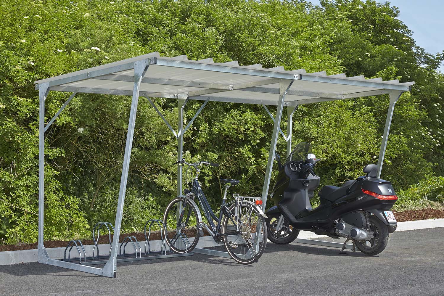 Fahrradunterstand D 813, Dach aus Trapezblech, 2050x2250x2170mm, Anbaueinheit – jetzt online bei MEILLER kaufen