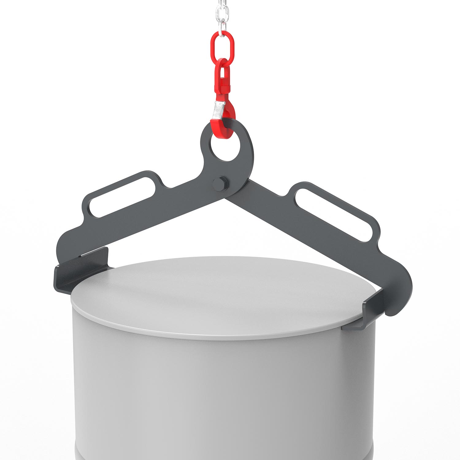Diese Fassklammer ist kranbar und eignet sich für das sichere und unkomplizierte Greifen von 200 l Rollreifen- und Sickenfässern. Wichtig für die Funktion ist, dass das Fass geschlossen ist. Die Fassklammer kann mittels Kran und Anschlagmittel eingesetzt werden. Der Fassgreifer wird dabei unter den Fassrand gebracht, durch Betätigung des Hubs fallen die Haltepratzen zurück und greifen das Fass. Die Greiferarme verfügen über praktische Handgriffe, um die Fassklammer manuell gut handhaben zu können.