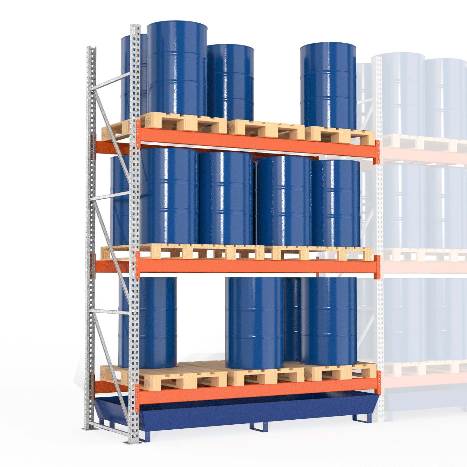Palettenregal Typ 2203 mit Auffangwanne aus Stahl für 24 Fässer, Anbaueinheit – jetzt online kaufen