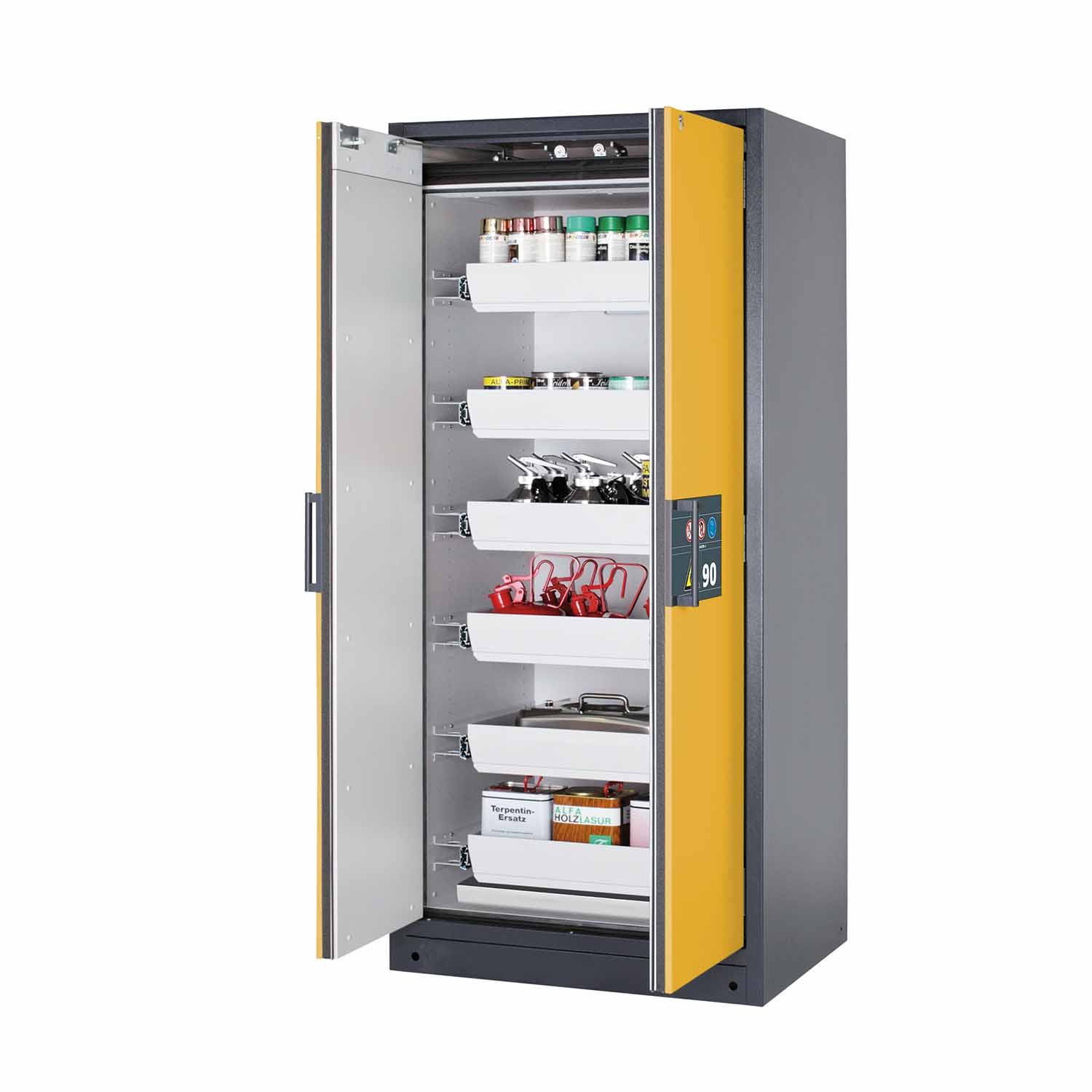 F90 Sicherheitsschrank mit 6 Auszugswannen und 1 Bodenwanne, Breite 90 cm online bei MEILLER kaufen