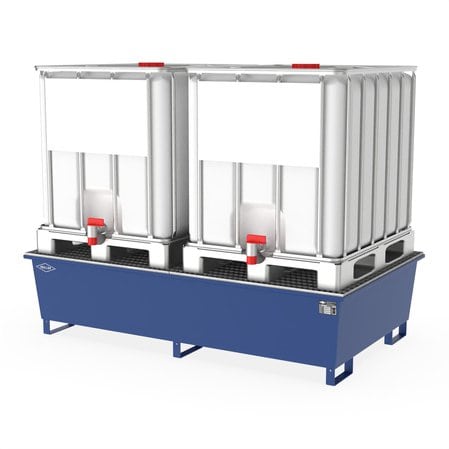 Auffangwanne aus Stahl für 2 x 1000 l IBC, mit Gitterrost, lackiert, 2200x1300x540mm