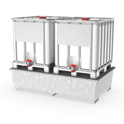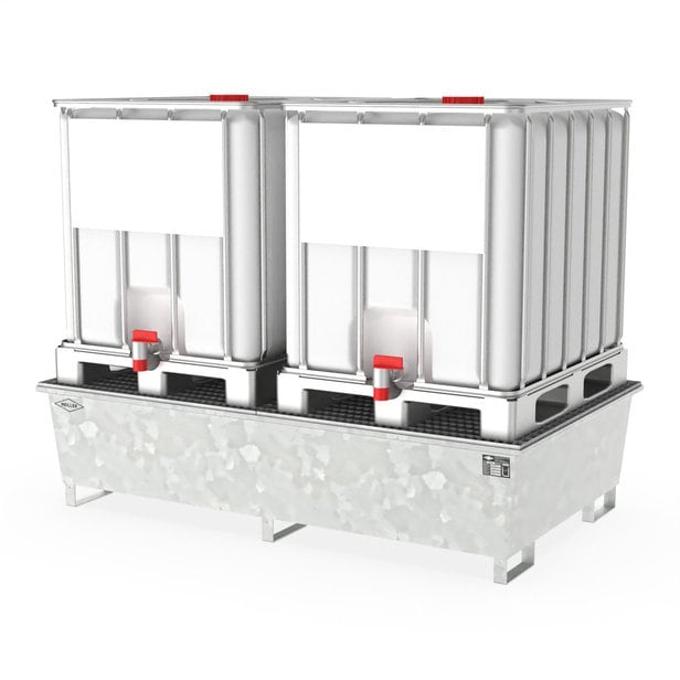Auffangwanne aus Stahl für 2 x 1000 l IBC, mit Gitterrost, verzinkt, 2200x1300x540mm